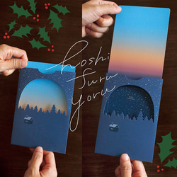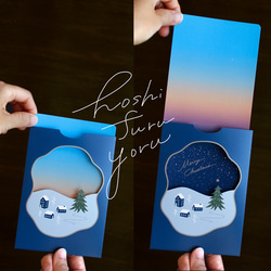 カードを引き抜くと、空が青空から夕焼、夜空へと変化する、あっ!と驚く仕掛けのメッセージカードです。