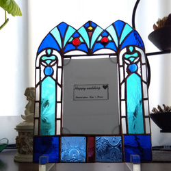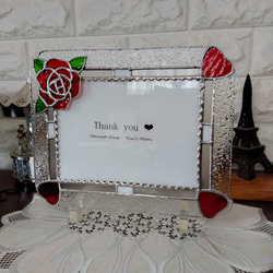 ステンドグラス◆ハート&リボンのフォトフレーム◆ペパーミント(2L)