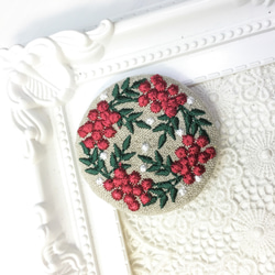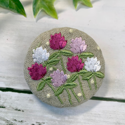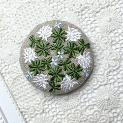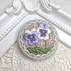 リネン 青と紫のお花のリース 刺繍ブローチ