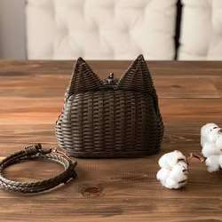 がま口の形をした かごバッグ、
