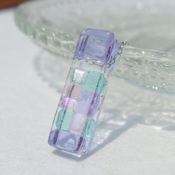 光るガラス、カラーガラスを細長いガラスの上にタイル状に敷き詰めました♪