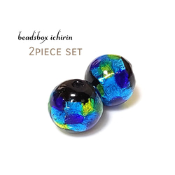 銀箔入り☆ランプワークビーズ aqua*set フラットラウンド 12mm 20個セット