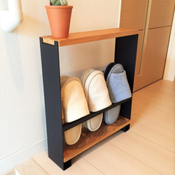 ★スリッパを3組収納できます。角パイプでスリッパを挟むように収納します。棚の上には小さな観葉植物や小物を飾ると素敵な玄関になります。