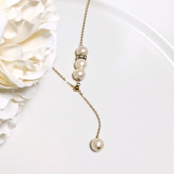 【サージカルステンレス】コットンパール♡7粒グラデーションネックレス 軽い キスカ ホワイト シルバー ゴールド