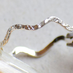少し太めのシルバーのリングを、一つ一つ丁寧に叩いていき、綺麗な槌目を表面にあしらったリングです。