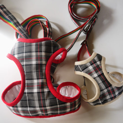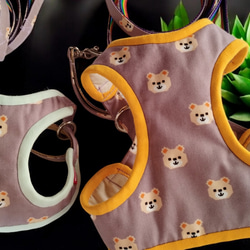オーガニックコットンの中綿が入っているのでお散歩で引っ張っても体に負担の少ない優しいハーネスとリードのセット。