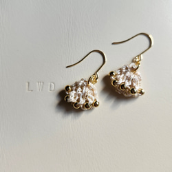 クロシェの丸モチーフとパール風ボタンを使用したヘアゴムになります。