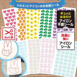 お試しシルエットアイコンのお名前シール ハガキサイズ アイロン&ノンアイロン