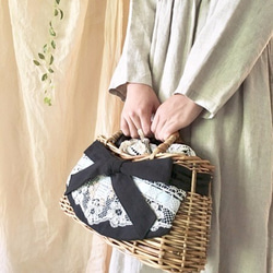 アンティークレースとリボンの大人のためのかごバッグ*170401