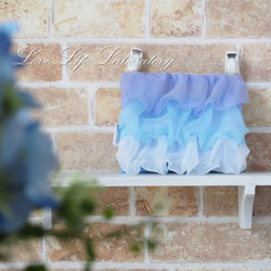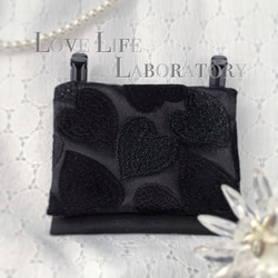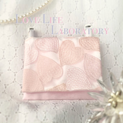 蓋には3種類のハートの刺繍が施されたオーガンジーとサテンを組み合わせ、外側のベースの生地にはドレスなどに仕立てるシャンプレーシャンタンを使用し程よい光沢感が出るようにしました。