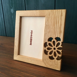 写真立て枠の「ダリアの透かし彫り」は、糸ノコ盤で加工をしています。