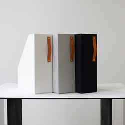薄い雑誌や重い本に対応できるようブックエンドの中に本を収納するデザインで作っています。