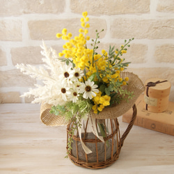 花材:プリザーブドフラワーのヒイラギ ・あじさい・カスミソウ・ヒイラギ・ブルーアイス・ジュニパーベリー・千日紅