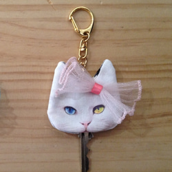 オッドアイがかわいいねこキーケースです。