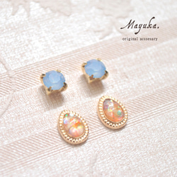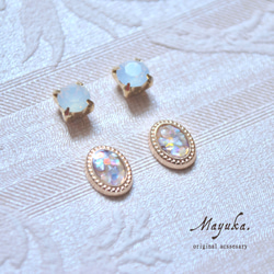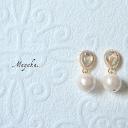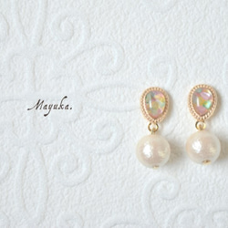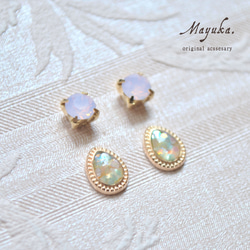 ふたつのパールキャッチとひと粒ビジューのピアス(ホワイトオパール)