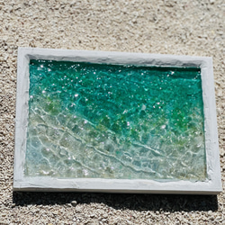 太陽や強いライティングで波紋が浮かび上がります。窓際に置いて飾り棚にしてもきれいです。