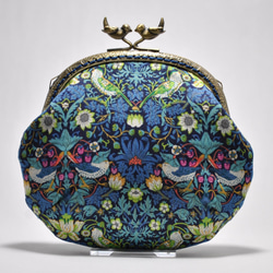 リバティプリント ロデン・ウッド ピンク&ブルー がま口ポーチ 口金12.5cm