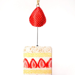 形はいちごをデフォルメしたぷっくり正三角形。いちご柄だけに、いちごミルクやパフェ、はたまた大人系のフルーツカクテルなどにぴったりです。革の断面は同系色のレッドで塗ることで高級感を出しています。