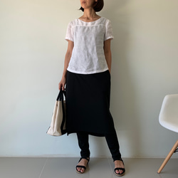 すらっと見せつつ、体を締め付けないゆったりシルエットで、動きやすいストレスフリーに完成しました