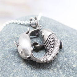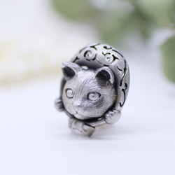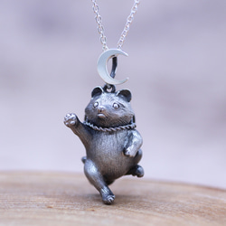 キュートな猫が三日月の上にちょこんと座っている可愛らしいペンダントです。
