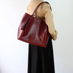 ポイント④クロコの型押しはエナメルが多いですが、エナメルは梅雨の時期にベトベトになったりくっついたりしやすいですが、お手入れが簡単で長く使ってもらえるようにマットな質感で仕上げて使用していくとツヤが出てくるレザーに仕上げています。