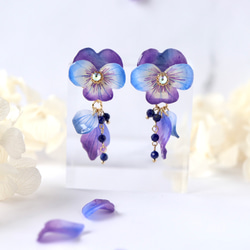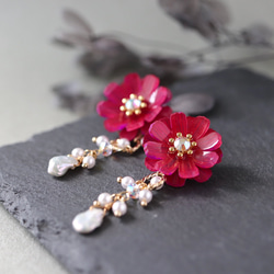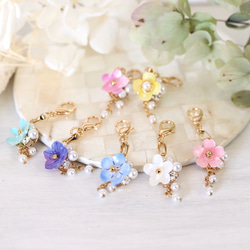 プラバンから一つ一つ手作りした、可愛らしい季節のお花たちを主役に、ヨーロッパ製の高品質なクリスタルガラス製パーツやパールを合わせた高揚感のある可愛らしいアクセサリーです。