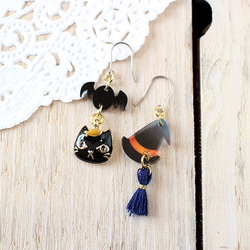 猫、コウモリ、魔女の帽子。ハロウィンにおすすめの可愛いイヤリング。