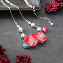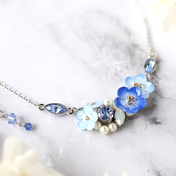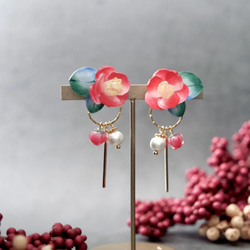 花脈まで描かれた手作りのシックな色のお花と、6mmのクリスタルビジューが印象的なアクセサリーです。