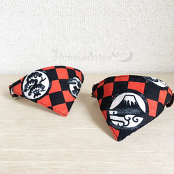 ※写真の取り付け例のように、首輪とセットでご購入いただいた場合、角カンなしの首輪には縫いつけ、角カンありの首輪には角カンに無料で取り付けいたします。
