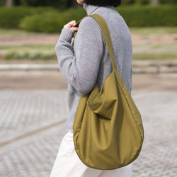 アーミーダック生地を使用した、シンプルなボストンバッグ。