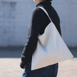 14枚目の画像は、中の様子がわかりやすいよう生成りのバッグをモノクロ画像に処理して表示しております。実際は内外ともに黒色の生地です。