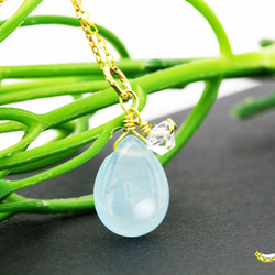 幸せを永遠に グリーンアパタイト 小粒ペアシェイプ 14kgf デザインピアス