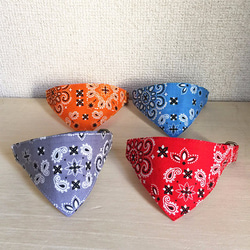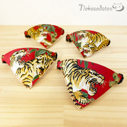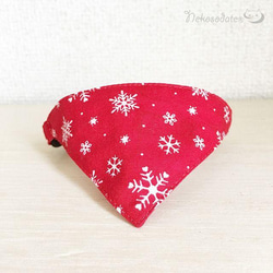 赤ベースの雪だるま柄に、新雪のようなリボンをあしらった、冬気分たっぷりのつけ襟風首輪です。