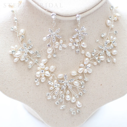 ダイヤモンドのような透明感があるキュービックジルコニア特有の輝きを存分に活かした繊細なデザインで、様々なドレスやブライダルヘアに合わせやすく花嫁さまのお顔まわりを華やかに演出します。