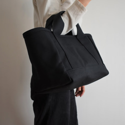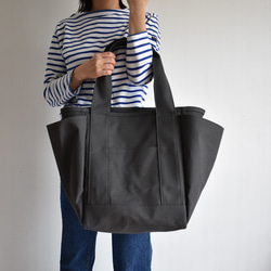 あえて底も厚みを持たせず、ゆるっとした帆布ならではのカジュアルなラインが出るデザインです。