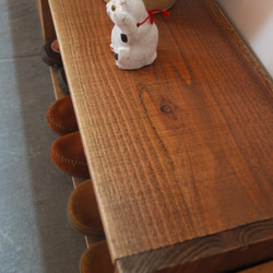 無垢の木を使っています。荒材に軽くサンディングしてブライワックスで仕上げました。