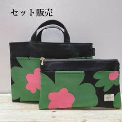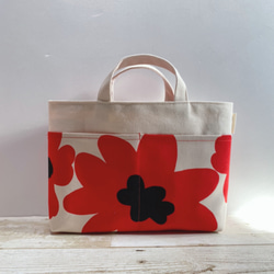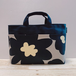 【再販24】帆布のバッグインバッグ (サークルブーケ・生成×ネイビー)