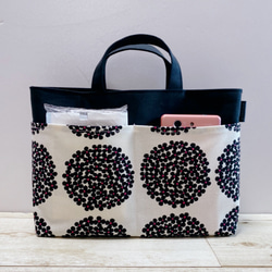 #バッグインバッグ #帆布のバッグインバッグ #北欧柄 #紫陽花 #ブルー #バッグ #サークルブーケ #犬のお散歩 #お散歩バッグ