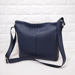 ★ハンドメイド★日本製★ソフト・本革★大き目の斜め掛けショルダーバッグ★ネイビー色★縦型★超軽量★