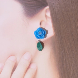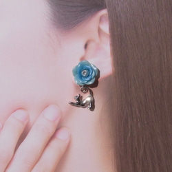 [送料無料]花びら揺れる♪青薔薇 ピアス イヤリング アシンメトリー ポリマークレイ⑰