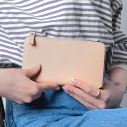 また、マットな質感の生地を使用しておりますので使い始めは、傷が多く見受けられる場合もございますが、使うにつれ、その傷も馴染みやがて目立たなくなっていきますので、革の成長もお楽しみ頂けると嬉しいです