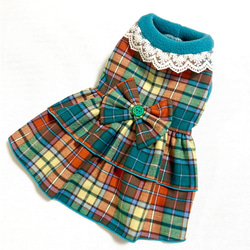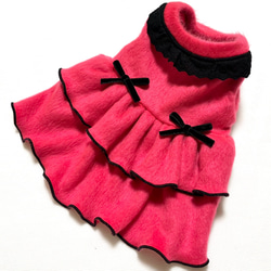 スカートはギャザーを入れてフンワリとさせ、裾は黒の巻きロックでシックにまとめました。
