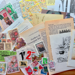 膨大なコレクションの中から選んだ切手をコラージュし、