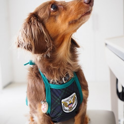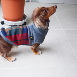 犬服 ダックスちゃんの背中切り替えハイネックタンクトップ 赤×チェック