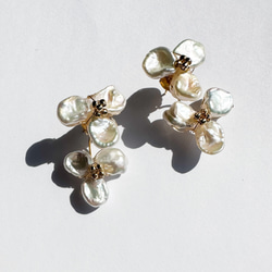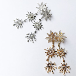 真鍮フラワーに水晶を合わせたきれいめボヘミアンピアス&イヤリング。