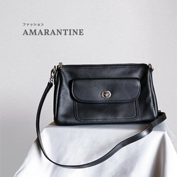 柔らかい本革ショルダーバッグ斜め掛け大容量 マチ広め収納バッグ ブラック