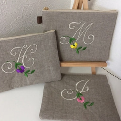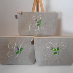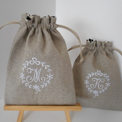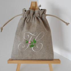 リネンの選べるお花のイニシャル刺繍巾着ポーチ 大 花花