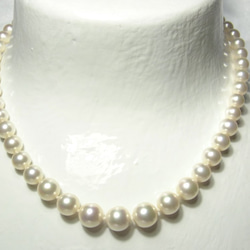 フェミニン感覚あふれるパープルグレーのカラーの貝パール(人工真珠)ミックスネックレス。しっとりした輝きから高品質感が感じられます。日本の人工真珠の歴史は100年以上の歴史を誇り、貝パールの品質は世界でも最高級として評価されています。ホワイト玉は本真珠の花珠にも近い、有機的な輝きと照りが特徴です。