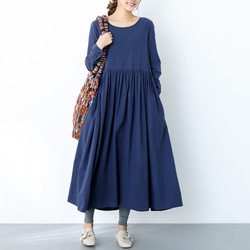(再販×25)26色展開 コットン ふんわり キャザー ゆったり ロングシャツワンピース ♪オーダーサイズ可