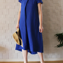 軽やかなフレンチリネンでありながら、表面にツヤがあり上品な印象です。共布のくるみボタンや、たっぷりタックをとったボリュームのあるラップ風のデザインも、入学式、卒業式などのセレモニーにもぴったりな仕様です。パールやコサージュを合わせてセレモニーに使用した後は、春夏にはカジュアルな普段使いにも使えて一石二鳥です。